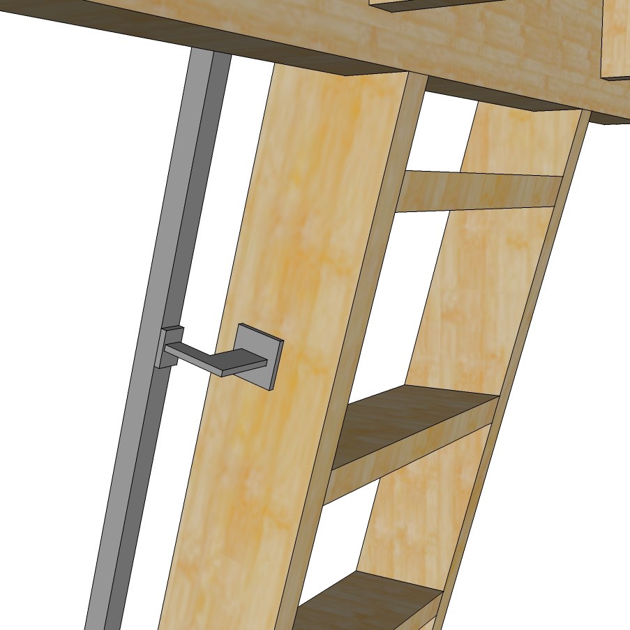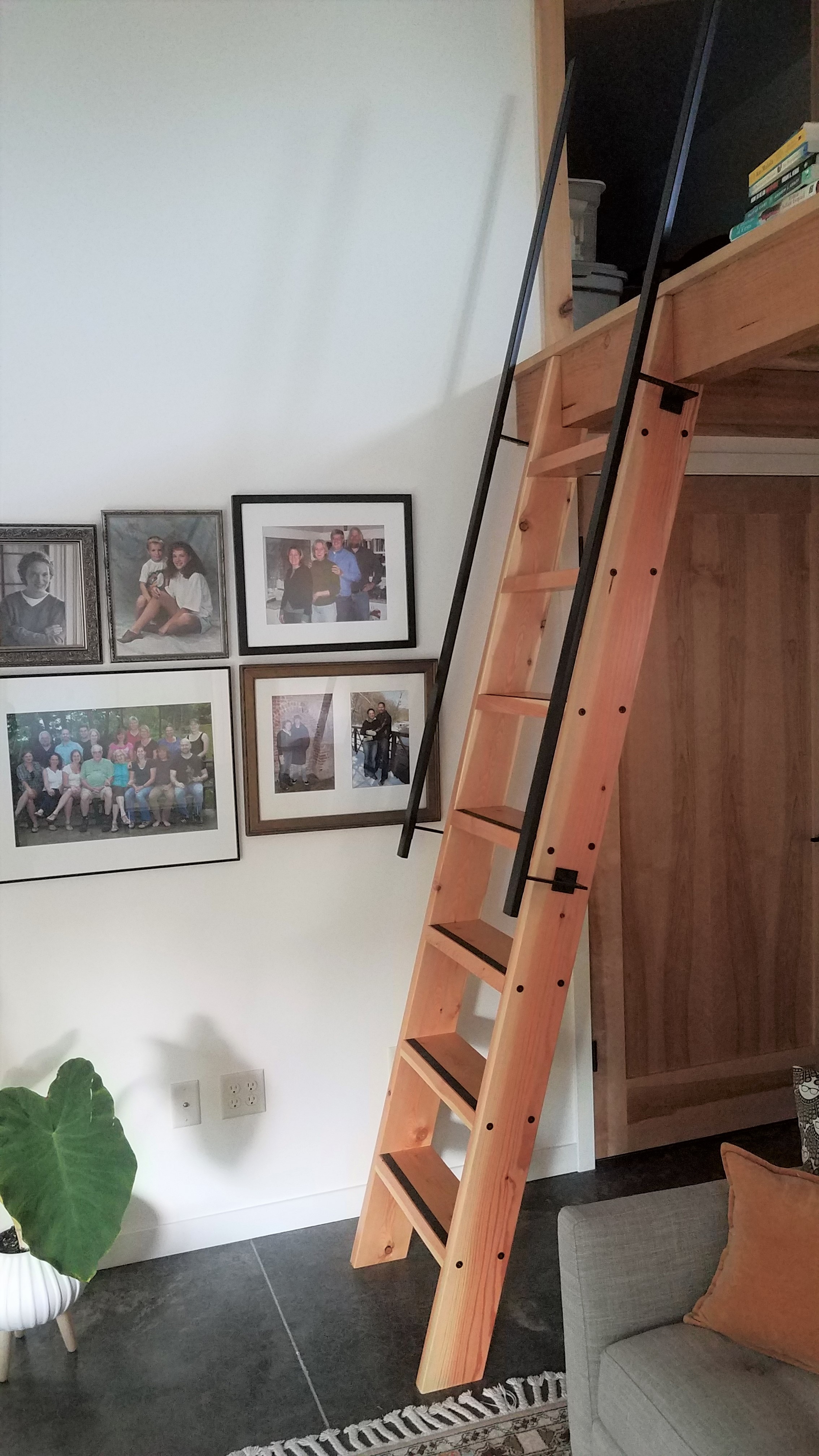Eric refined the details (some of which are best felt, not seen) and rightly insisted on an inset skid strip at the front edge of each tread. The ladder is made from stock 2×6 Doug Fir and the handles are from Bold Manufacturing and Supply.