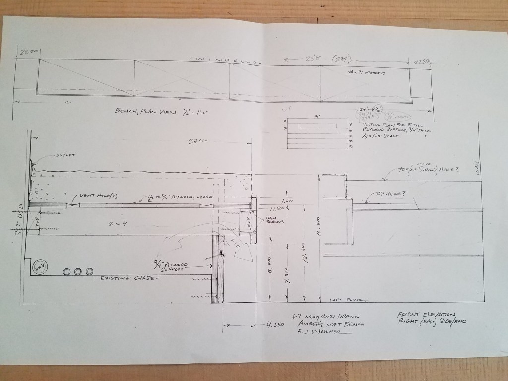 Eric also built the ladder, the refrigerator panel, and the loft window seat. I fiddled around on SketchUp until I got a design I liked.