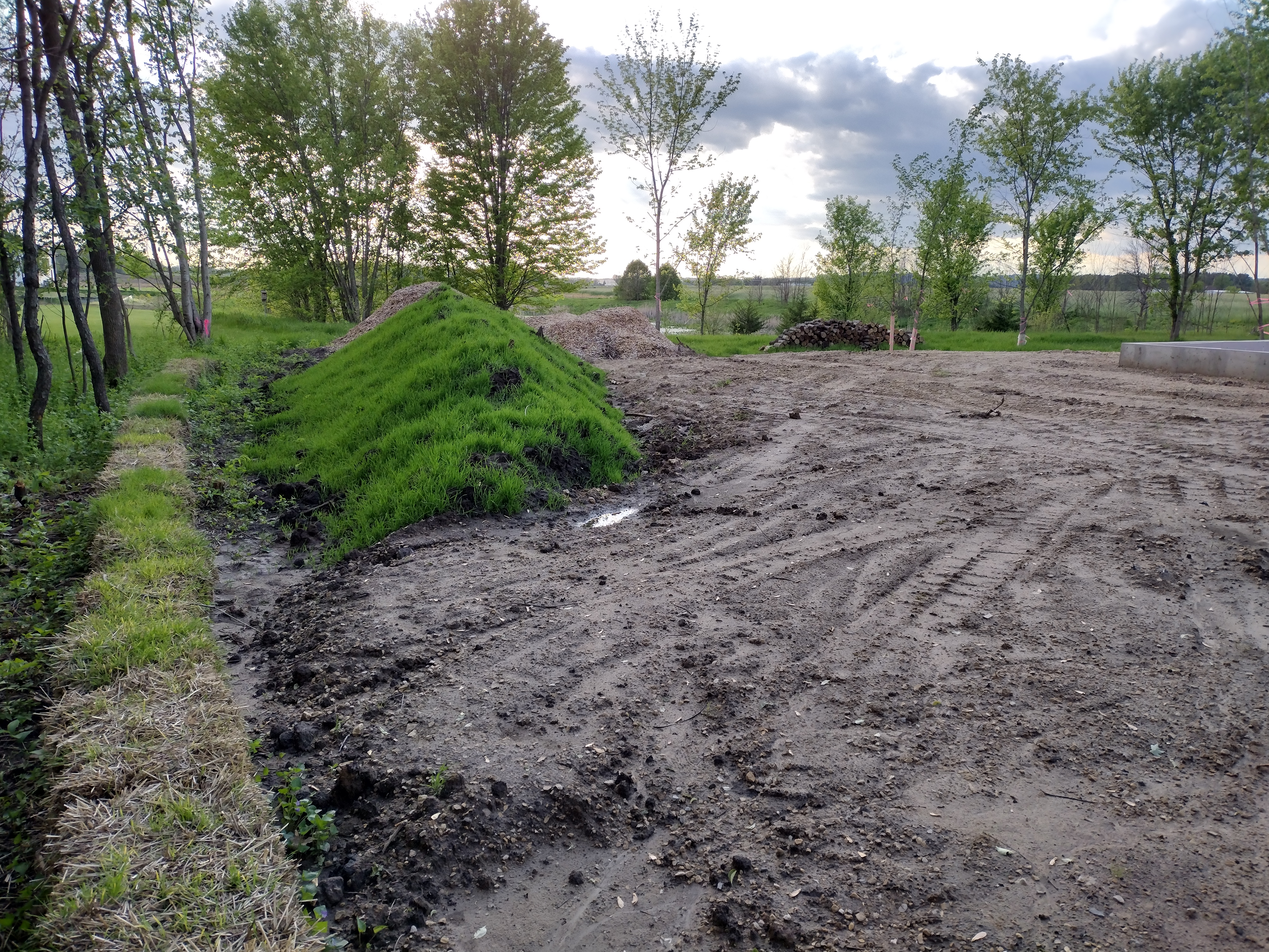 I couldn’t be more proud of how tucked in and tidy the foundational work looks. As a bonus, the topsoil pile and strawbale erosion control “fence” is holding firm and the rye grass is thriving!