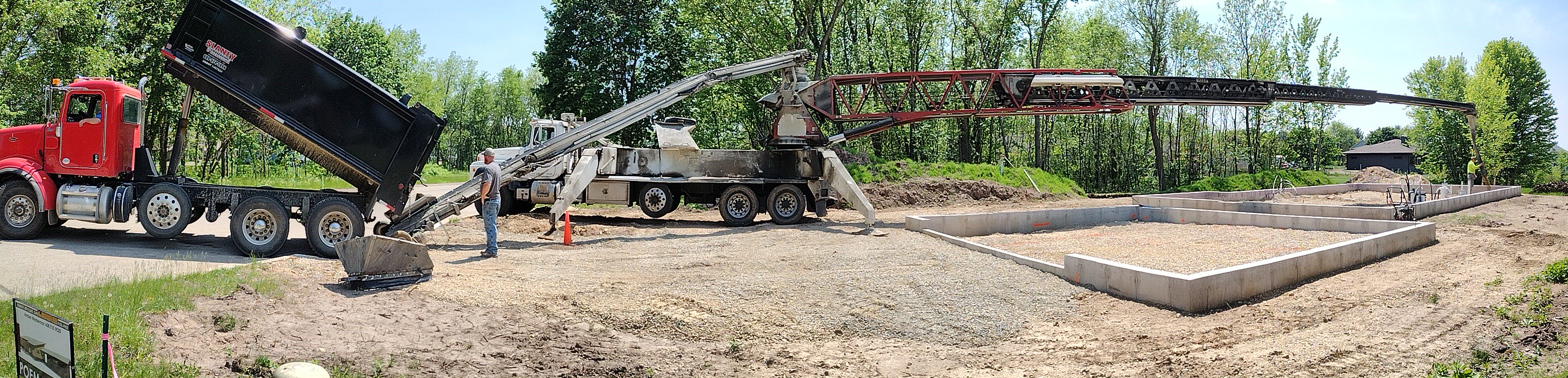 Finally, Slaney Excavating and Landscaping returned with a conveyor belt to “gently” place a 6″ thick layer of “clear stone” (1″ gravel with no fines) over and around the pipes.