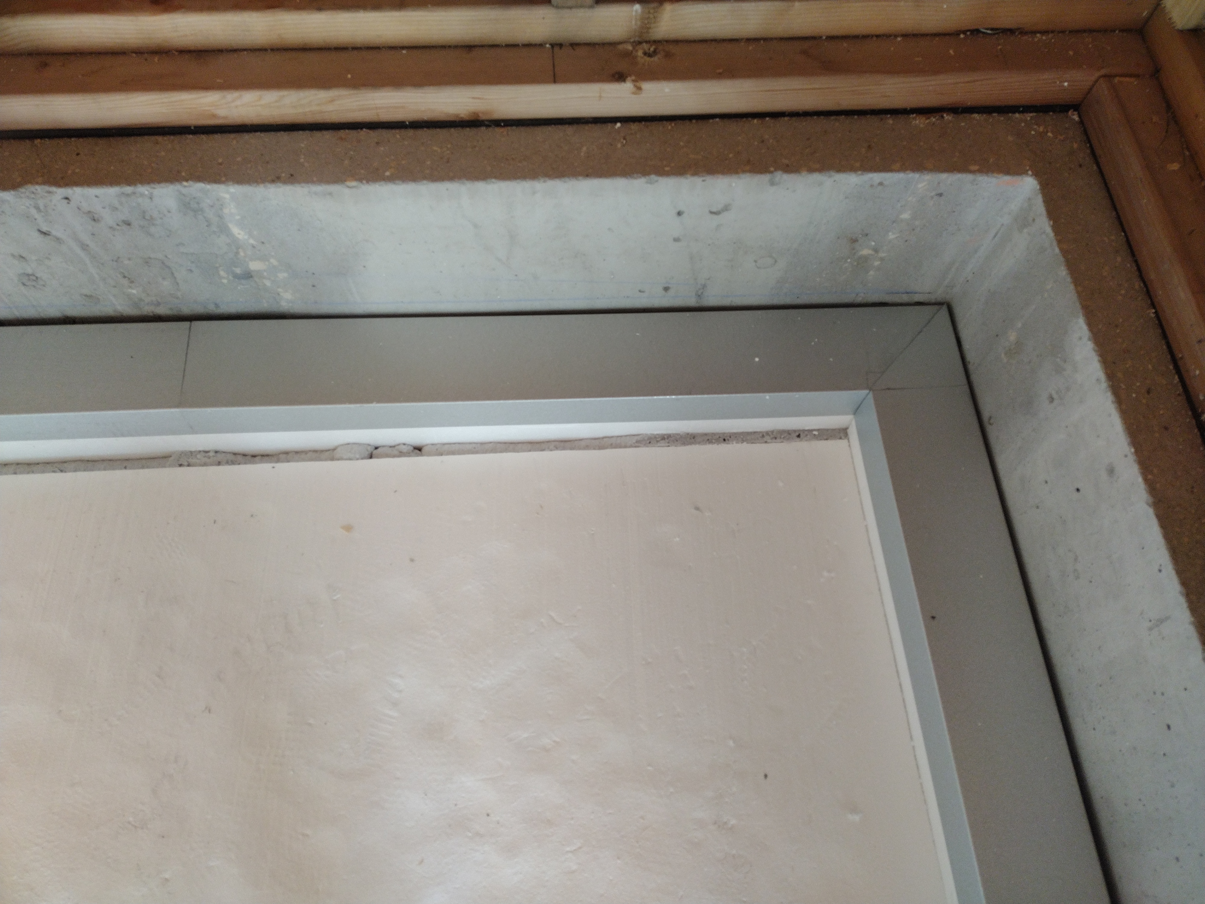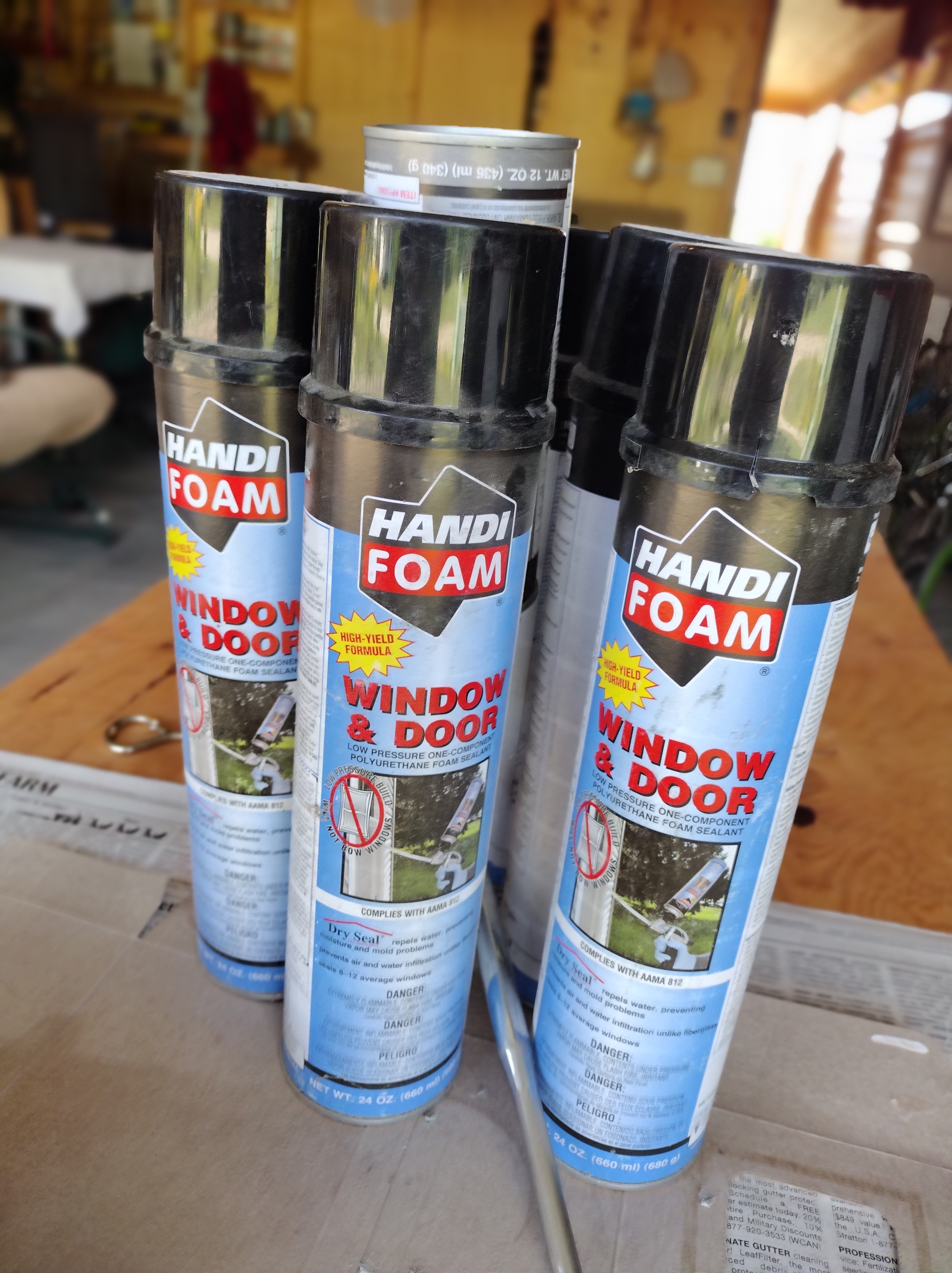 We used wood shims to get everything tight and then spray foamed the gaps using canned spray foam from HandiFoam, a Green Guard Gold certified product low in chemical emissions.