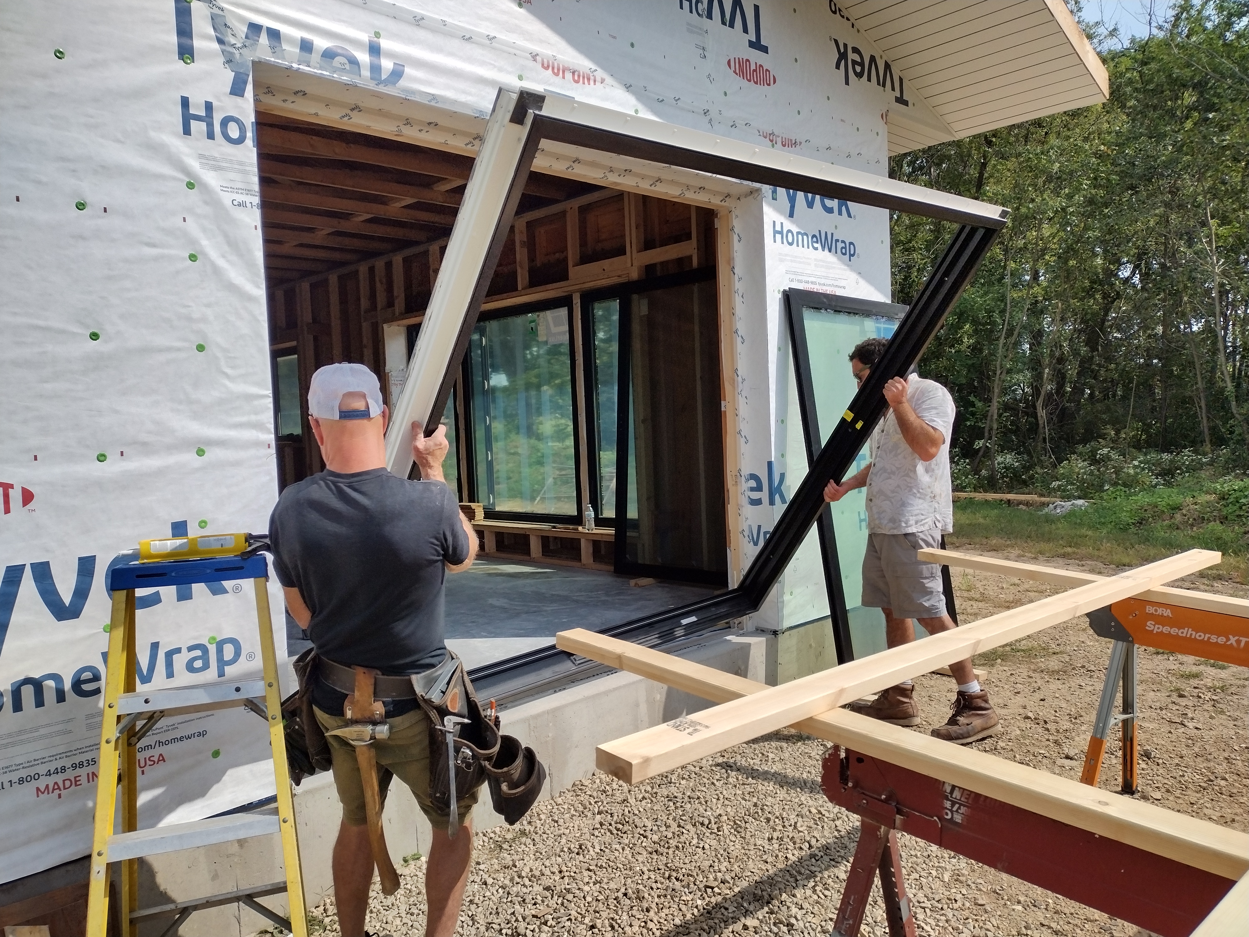 August 23 – September 6: Taking delivery of a house full of new windows and doors comes with an air of celebration. It means the hard work of getting the walls and roof up is done and the worry of securing housewrap and tarps over the awaiting holes is over. From inside, we’ll finally be able to appreciate the views, framed by the window sash, that will be enjoyed for years to come.