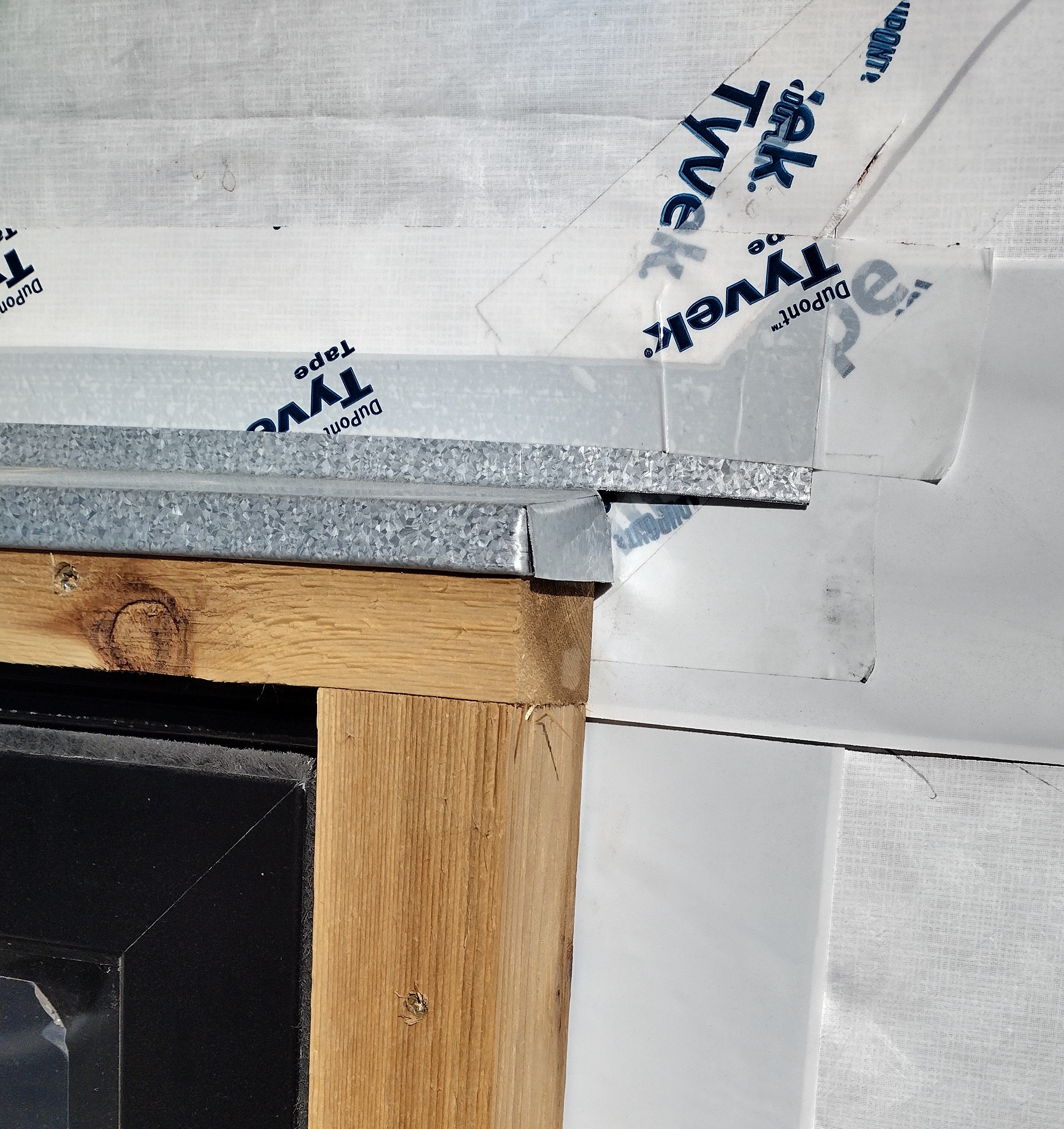 For siding, I chose James Hardie’s planks with a 7″ exposure, and Tamlyn’s plank flashing to back the seams. Together with caulked seams, this “armor” is the first line of defense against water intrusion. The siding and trims are installed on Tyvek’s HomeWrap, a waterproof and vapor-open material that meets Code’s requirement for a “water-resistive barrier”, and is the second line of defense against water intrusion.
