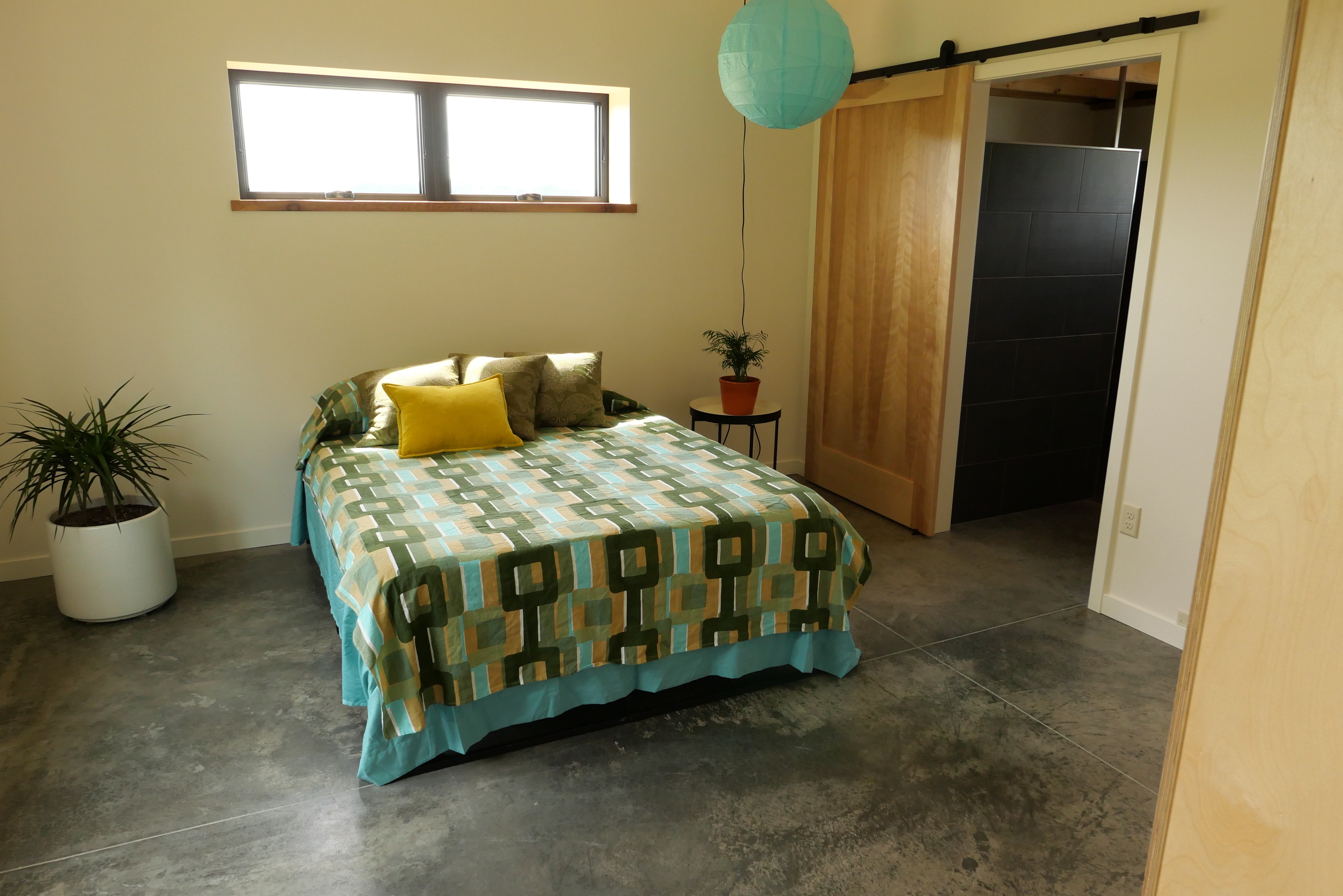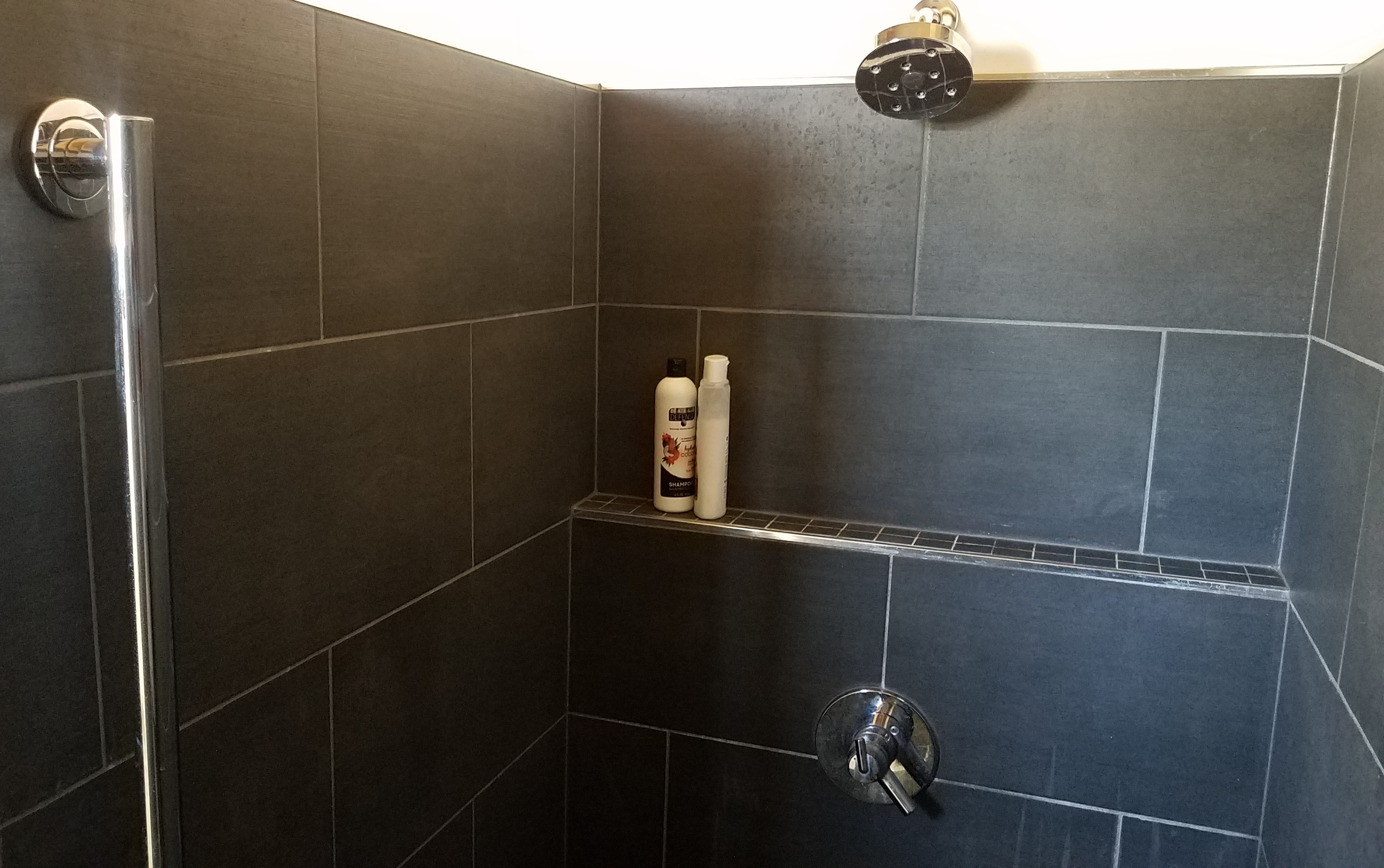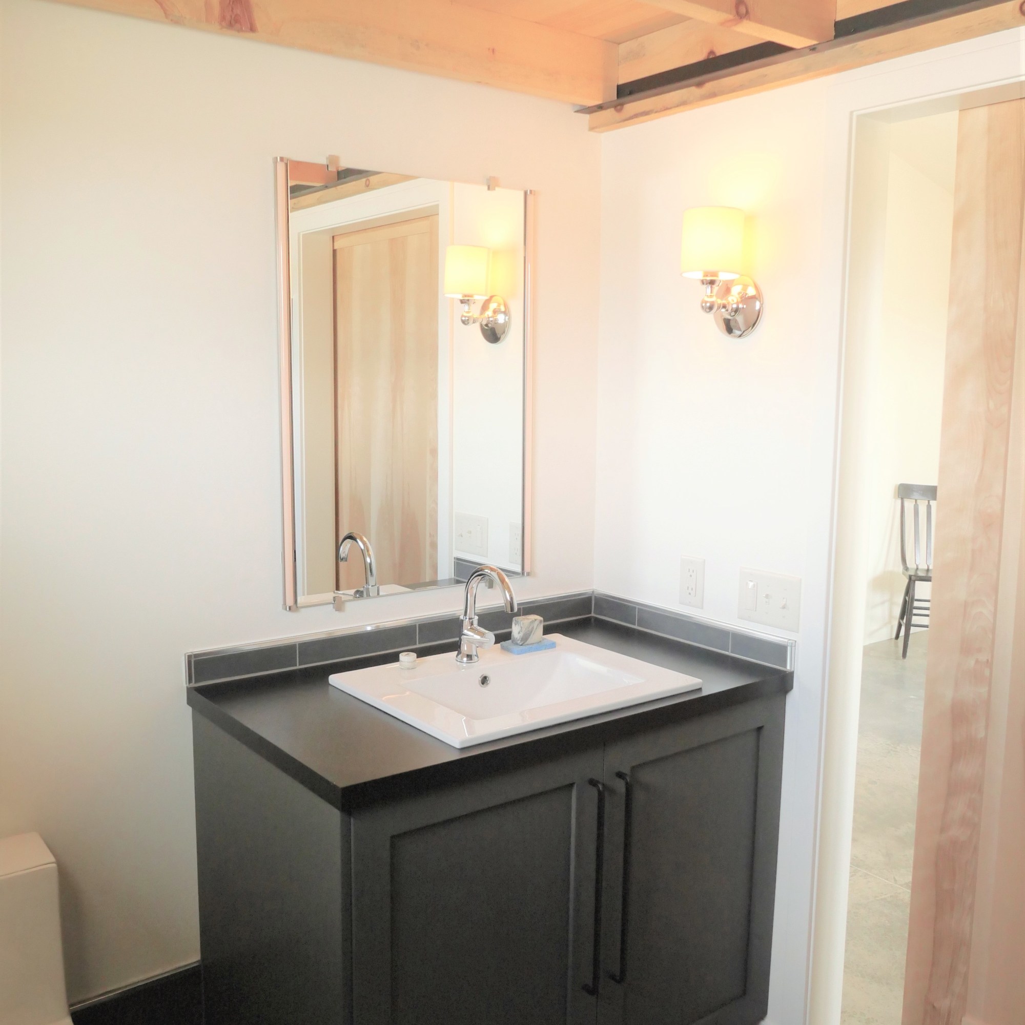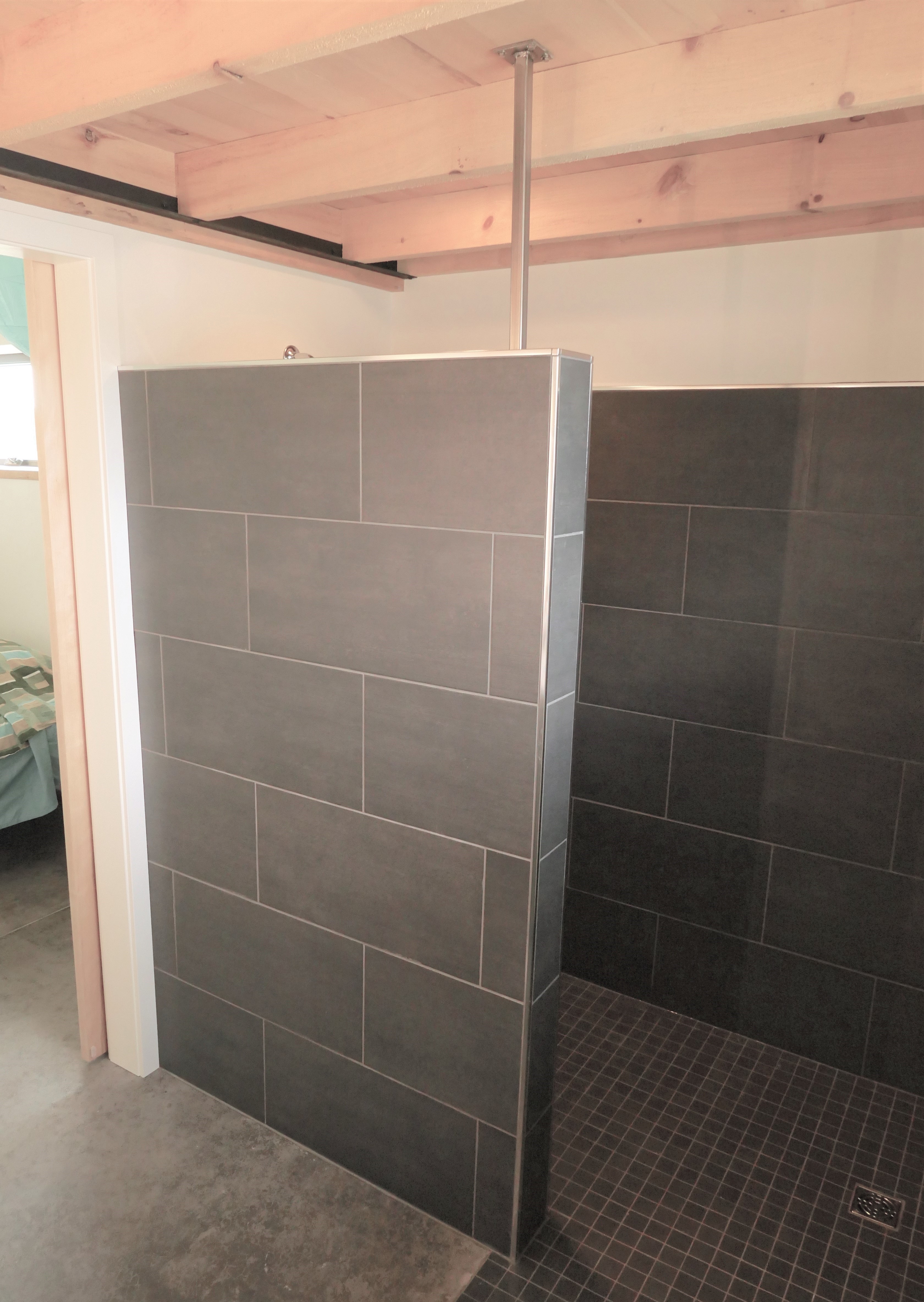 The bathroom fans are an exception: to meet the high CFM ratings required by Code for year-round bathroom ventilation, we installed 80 cfm ultra-quiet Panasonic fans above each shower. They are set on a humidistat for brain-free operation.