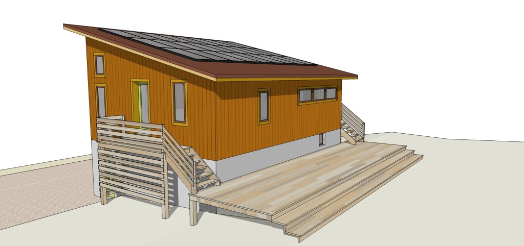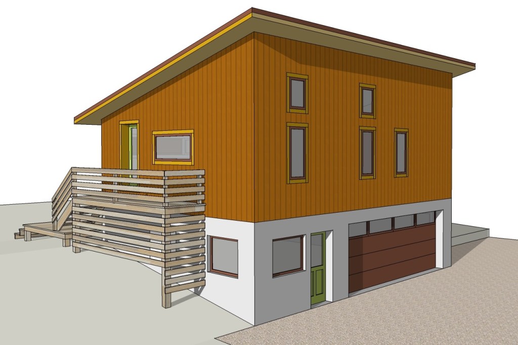 When you have an alley behind your house and you need a garage and a workshop, why not also add solar panels, a hot-tub deck, and guest quarters? This double wall house on an ICF (insulated concrete form) foundation with a vaulted ceiling and triple-pane windows will meet the highest standards of energy-efficiency. It will be a place for fun, family, friends, and projects.