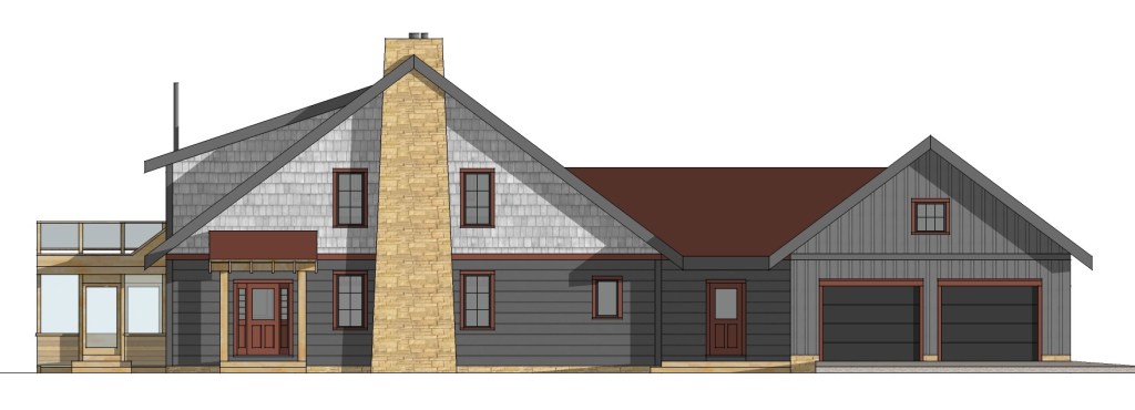 Could it be a trend? This ambitious young couple are going to “GC” (general contract) and do most of the work to construct their own home. Located down a country lane and overlooking the Wisconsin River Valley, it will make an enviable retreat from the world. My clients came to me with a well thought out floor plan, a building section, and a list of specifications that needed only a little refinement on my part. It has 2×6 walls with 4″ of sheet foam on the exterior, an ICF foundation, and high-heeled roof trusses for all-around really great R-value.