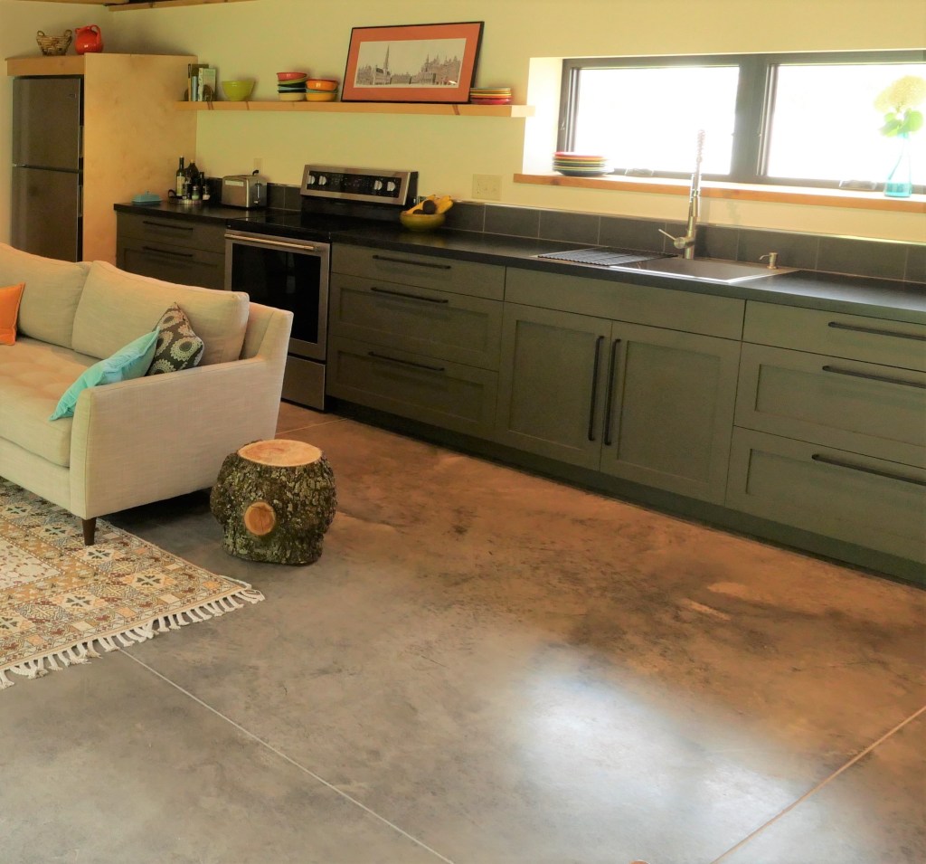 Work-from-home is common now, but some people still want a bit of a commute. How about a scenic stroll from your country home to an all-purpose garage–homebrew kitchen–office not far away? The exterior takes its cues from my client’s Taliesin Architects designed prairie style home, with a lighter band of stucco above a darker band, both in rich earthy tones. Our bold move was to attach the hip roof of the office to the spacious volume of the garage and kitchen, thereby fusing a prairie element to a shed roof, expansive enough for a large solar array. The walls call for 2″ of foam attached to the sheathing on a 2×6 wall, for a total of R-30. The ceiling calls for R-60 in the vaulted truss space. Plans are out for bid.