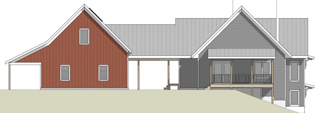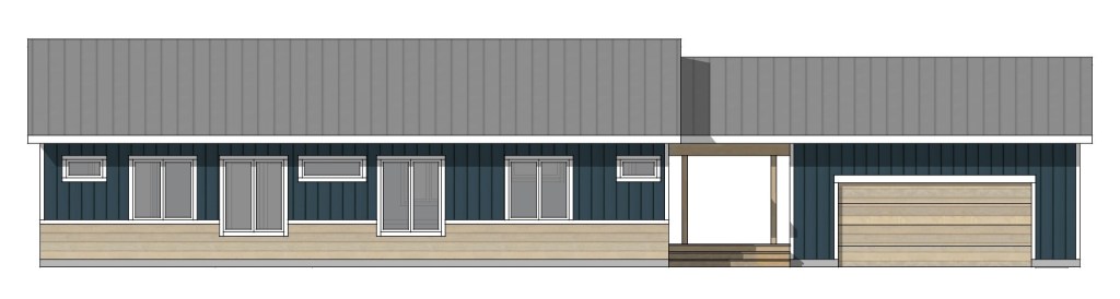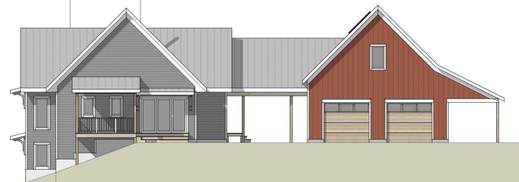 It was a pleasure working on this handsome family home with a semi-attached barn-look garage. Children’s bedrooms are in the walkout basement, with the parents suite on the main floor and tucked behind a work-from-home office. This home plans for R-45 double stud walls and R-60 to 80 on the (non-habitable) attic floor. Plans are out for bid.
