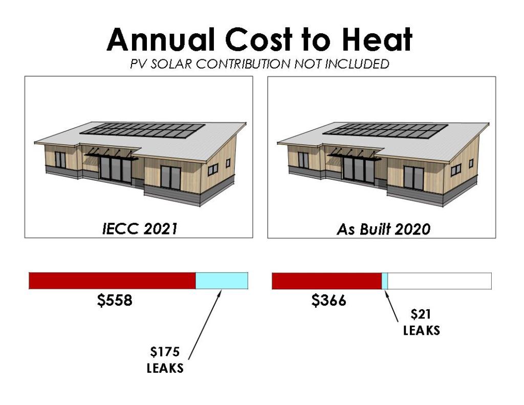 The upshot is that if you use space wisely, and insulate and air-seal beyond IECC (residential code), you can downsize the equipment needed to heat, cool, and power your life.