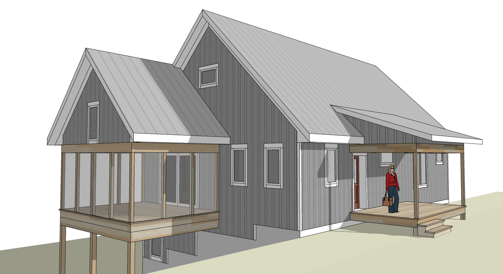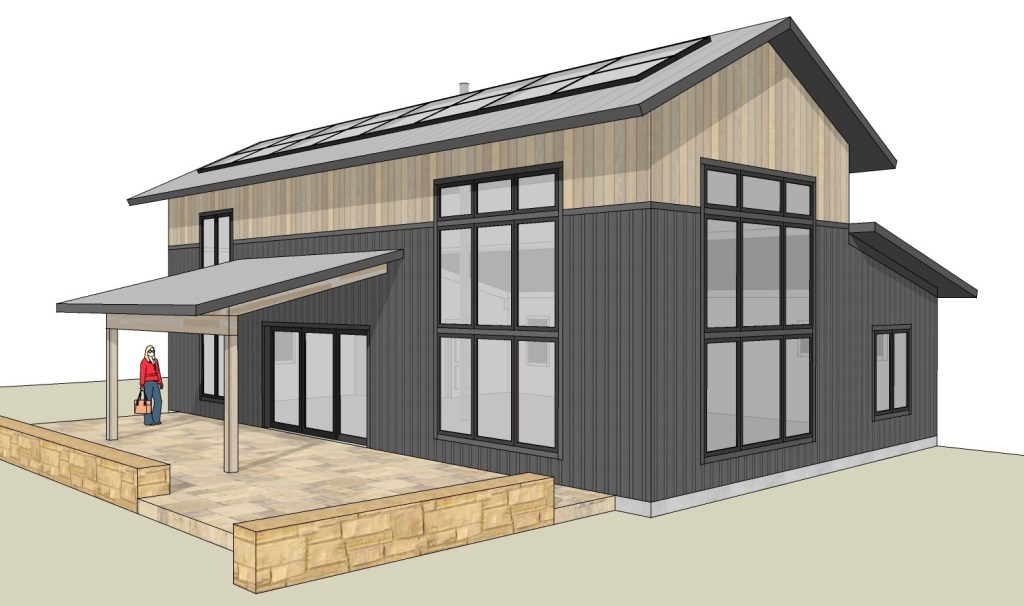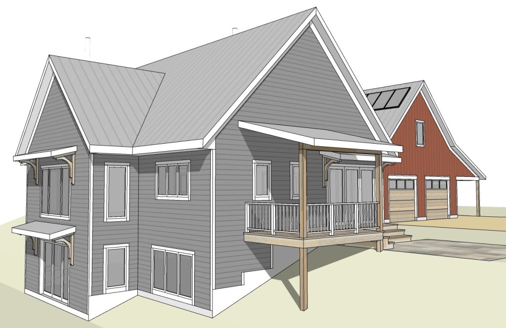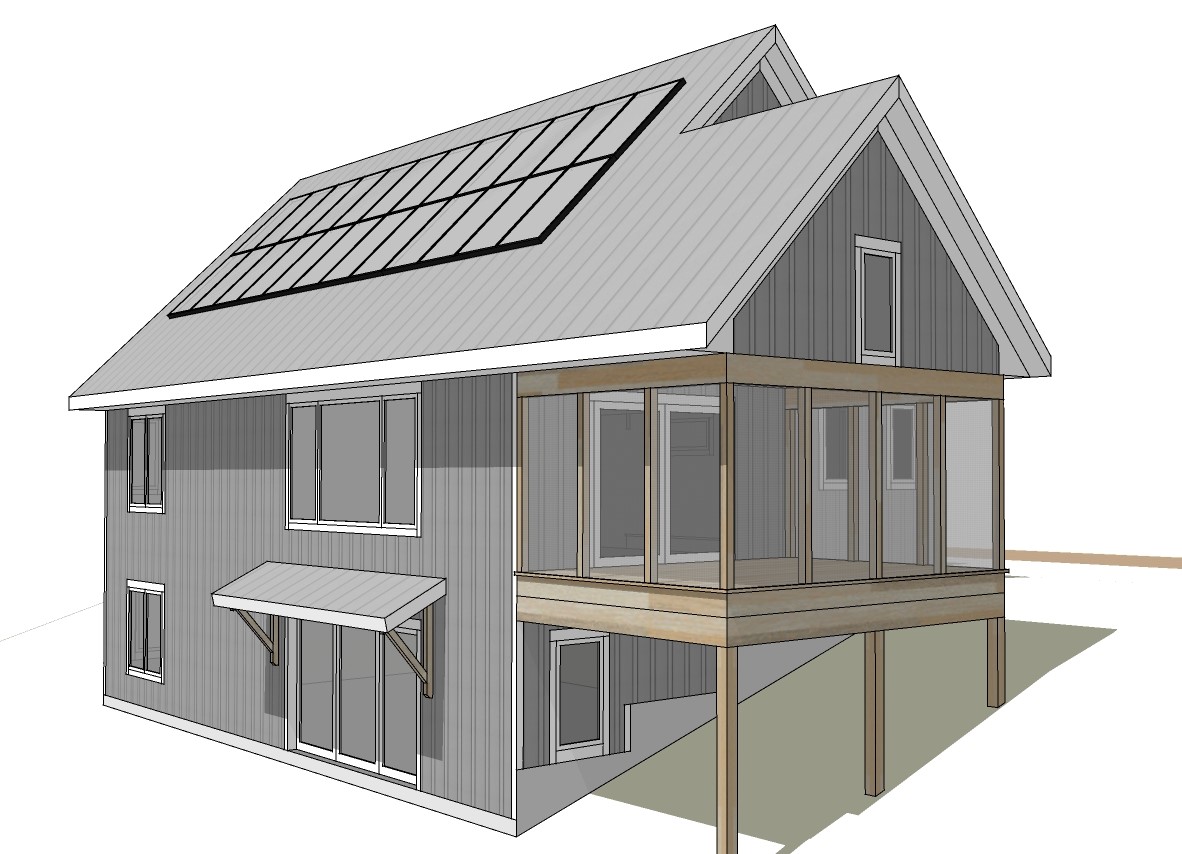 When your house is too small to host your extensive family, who love to gather to cook, eat, play cards, and hike around the farm, you build a party barn—right? This design calls for an R-45 double stud wall and R-60 in the vaulted ceiling. This project has received preliminary zoning approval. The next step is finding a suitable general contractor and preparing Final Construction Drawings.